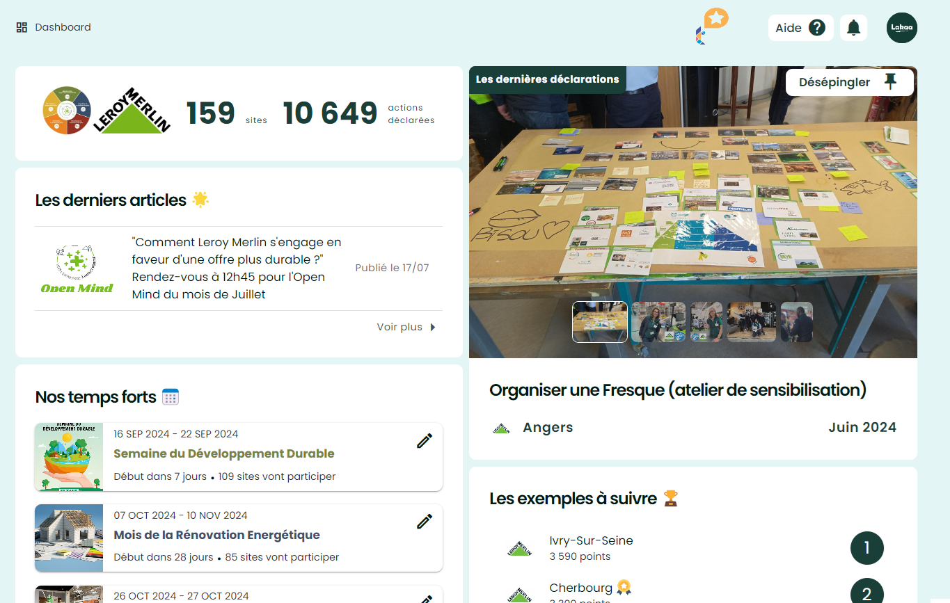 « Leroy Merlin Espagne concernera 131 magasins et un entrepôt, la Pologne vise 80 magasins et l’Italie 45 magasins, expose le fondateur. Les plateformes des différents pays sont séparées, avec une équipe propre à chaque fois- un binôme RSE/ digital. « Le travail s’effectue en deux parties, explique Baptiste Frelot. La première étape, de terrain, sert à demander aux magasins comment ils travaillent sur la RSE, ensuite, l’étape des webinaires est celle où nous regroupons les acteurs pour expliquer le fonctionnement de la plateforme ». Deux ans après le lancement de la solution chez Leroy Merlin France, l’enseigne nordiste souligne que la totalité des magasins et entrepôts ont partagé des actions via la plateforme. En tout, 10 600 initiatives ont été remontées et près de 7 000 utilisateurs sont actifs. A l’international, la démarche est également bien engagée, puisque « Leroy Merlin Portugal a déjà proposé plus de 400 initiatives ».
