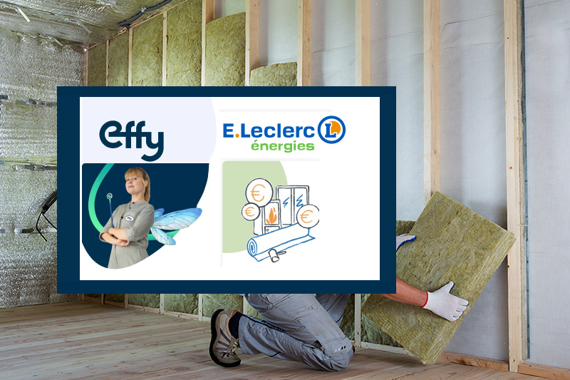 Sa branche énergies s’allie à Effy pour proposer une nouvelle solution pour faciliter les travaux avec prise en charge du parcours, gestions des primes , suivi du projet et cadeau Leclerc sous forme de bons d’achat. E.Leclerc énergies et Effy s’unissent pour concevoir une solution d’accompagnement complet du client dans l'intégralité de son parcours travaux - de leur réalisation à la déduction des aides financières*- et avec la remise d'une e-carte cadeau dont le montant peut aller jusqu’à 400€. Notons que le partenariat concerne quatre types de travaux :