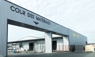 Vue panoramique du magasin Bricopro dernière mouture avec une belle entrée vitrée, au centre : une entrée Cour des Matériaux ... et à droite le négoce de matériaux.