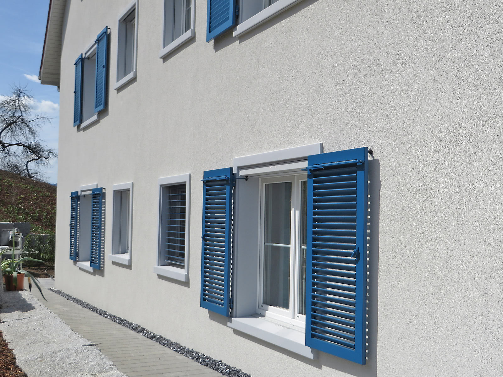 Côté design, si la question de l’esthétique et du clair de jour est souvent perplexe dans le choix du volet roulant, elle ne se pose pas avec le volet battant. Là encore, EHRET assure esthétique et discrétion. Le clair de jour est optimisé grâce à un carter profilé et une intégration discrète à la façade. Côté coloris, en tout, ce sont plus de 4.000 coloris qui sont proposés à la vente dont un nuancier de 213 coloris RAL et 3 coloris AkzoNobel -2100, 2700 et 2900- disponibles sans plus-value. Des variantes design avec des formes spécifiques (cintre, triangle…) sont également possibles pour répondre à des demandes personnalisées et s’adapter à l’esthétique de la maison.