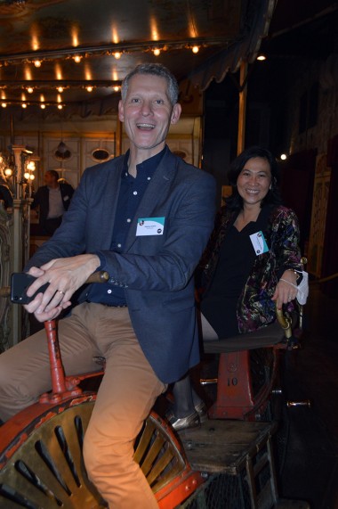 Au centre : L'Outil Parfait pour s'amuser en soirée ? Un vélocipède de manège, n'est-ce pas Laurent Cornet !