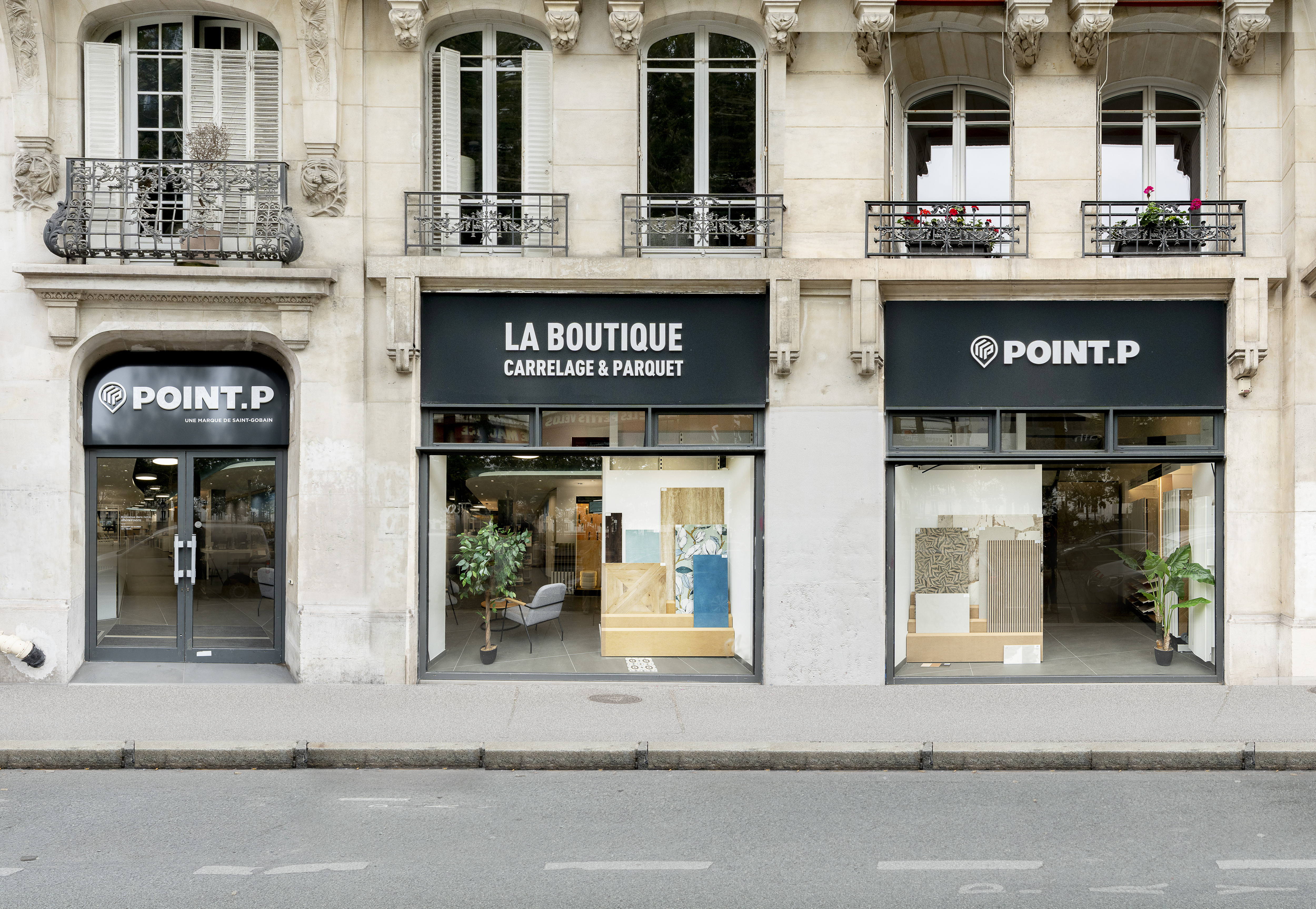 Quand vous remontez le boulevard Richard Lenoir à Paris 11, après avoir léché quelques vitrines de magasins de revêtement et même des carreaux géants exposés à même le trottoir, s'être frotté à quelque boutique de parquet et aperçu un show-room Lapeyre (ex-cousin de Point.P) à la devanture un peu défraîchie... on finit par découvrir la boutique Point.P, flambant neuve, fraichement repeinte couleur anthracite . Dès l’entrée on s'incline sur des présentoirs avec échantillons aux teintes et matières qu’on n’imagine guère dans une chambre d’étudiant. Ici, c'est écrit, on vise le client au portefeuille ventripotent. Et d’ailleurs Bertrand Alard, directeur marketing de Point P révèle que l’un des premiers clients était un parisien qui chinait pour sa maison secondaire de Deauville. Vu le sourire satisfait du directeur on sent que c’est exactement le genre de scénario recherché. « Nous sommes assis sur 1000 points de vente et le client qui commande ici retrouvera ses produits dans le magasin de Deauville »
