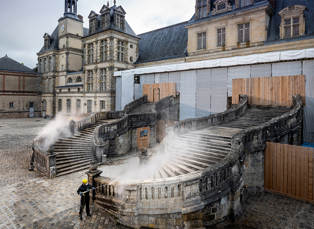 Kärcher s’est associé au château de Fontainebleau pour participer à la remise en état de l’un de ses joyaux: l’escalier en fer à cheval.