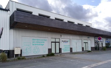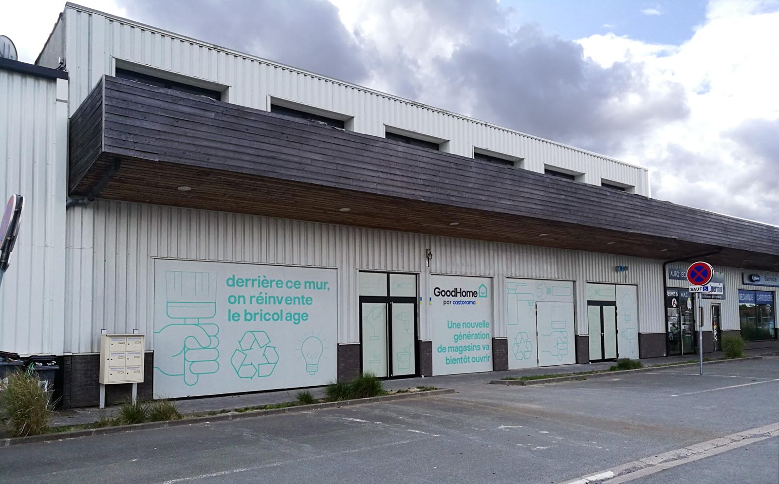 "Derrière ce mur, on réinvente le bricolage"... Le panneau qui cache le futur magasin GoodHome incite à avoir la foi... car pour l'instant le lieu est assez peu inspirant. Situé avenue de la Résistance, à Saint André au nord de Lille, le GoodHome "par Castorama" devrait être un modèle express comme celui situé au sud de Londres. Il sera encadré d'un côté par un point de vente O'Terra et par une auto-école, avec un McDo sous le nez. C'est d'ailleurs de la chaîne de restauration rapide que ce nouveau concept s'inspire avec