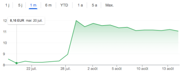Cours de bourse de MrBricolage aux lendemains de l'annonce des résultats semestriels (source Google)