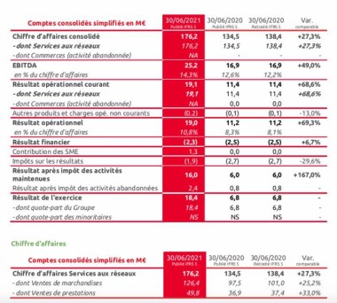 À fin juin 2021, la dette financière nette ressort en forte diminution, à 45,2 M€ contre 76,8 M€ à fin 2020, et 94,7 M€ au 30 juin 2020. La trésorerie du Groupe s’élève à 72,8 M€ à fin juin 2021, incluant l’utilisation de la ligne de découvert de 3,0 M€, contre 39,2 M€ à fin 2020.