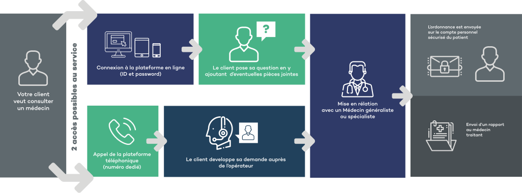 - pour contacter un généraliste et/ou être mis en relation avec un spécialiste, sans attendre de rendez-vous souvent long à obtenir