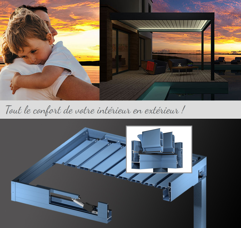 Vous n’avez pas besoin d’une pergola de grande dimension ? Consultez alors nos autres modèles de pergolas bioclimatique (Horizon 2, Lucia…) qui seront plus adaptés.
