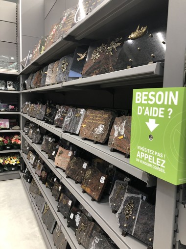 Toujours à droite en entrant dans le magasin la zone fleuristerie, serre chaude. Elle dispose même d’un accès direct. La tenue des fleuristes est sans équivoque : vert mais avec toujours le slogan « Inspirer et réaliser »La zone Motoculture est déjà bien équipée de rayons Oregon, Stilh là mais les responsables de ce secteur s’affairent encore car ce n’est pas tout à fait la saison propice.