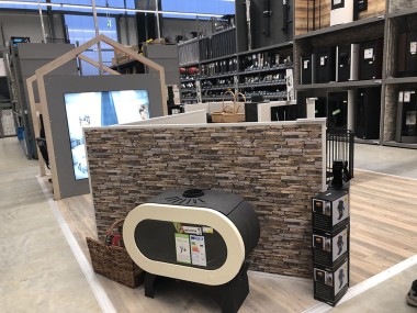 Une zone chauffage propose des poêles à pellets et autres inserts. Leclerc peut faire bénéficier à ses clients de la Prim’Renov et des primes C2E grâce à la prestation de pose par des artisans RGE.